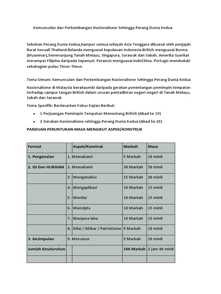 SEJARAH KERTAS 3 KEMUNCULAN DAN PERKEMBANGAN NASIONALISME SEHINGGA PERANG DUNIA KEDUA Pendapat anda sejauh manakah kejayaan yang dicapai oleh. Nasionalisme di malaysia sehingga perang dunia kedua22. Kemunculan dan perkembangan nasionalisme sehingga perang dunia kedua kbat Friday December 24 2021 Edit.
