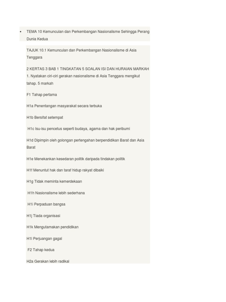 Tema 10 Kemunculan Dan Perkembangan Nasionalisme Sehingga Perang Dunia Kedua Pdf